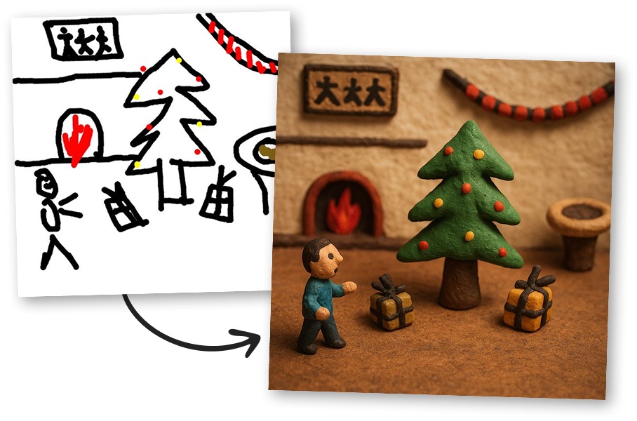 You can customize our AI Video Experience to transform your team, guests, or audience into the stars of their own holiday clip. We can incorporate your branding, add festive overlays, or create multi-scene mini-movies. It is a powerful way to send a greeting that feels high-effort to the receiver but is low-friction for you to produce at scale.