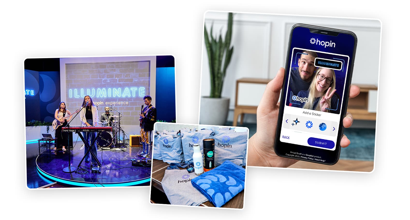 You can customize your in-person event and virtual photo booth with the same style, logos, colors, assets, etc.
